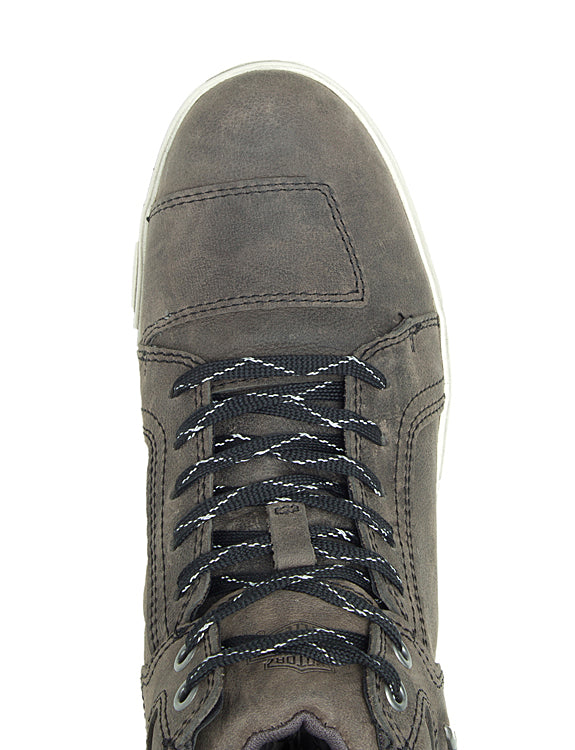 Every new iteration of the Bateman Riding Sneakers Collection adds an opportunity to express your priorities. From color and shaft height to performance and comfort features, the Bateman Group distinguishes itself with an essential street-smart appeal, offering room for individual interpretation. Start with the requisite full-grain leather upper and full-length mesh lining, and check out the detailed follow-through, including an ankle protection insert (not shown) to maximize your time in the saddle and the convenient pull-on loop to facilitate an easy on/off experience. The eye-catching reflectivity from the laces enhances your safety, as the slightly distressed rubber outsole promotes a citified look and the cement construction provides dependable footing. The Bateman Riding Sneaks lace-up like an updated running shoe, but make no mistake. The Bateman is not about walking. Or running. It's about riding. The branding graphics include the embossed Bar & Shield® logo at the top of the tongue and the V-Twin® metallic badge at the outside ankle. Rider smarts with urban savvy. This is the hybrid you've been waiting for. Shaft height: 4.50". Heel height: 1". Grey. Leather. Wolverine. D84657