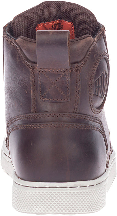Genuine riding gear takes a transformational turn with the arrival of riding boots that present like a casual sneaker. And, the Harley® Bateman Collection displays that innovative style, especially in the H-D® Bateman Ankle Pro Brown Motorcycle Sneakers. Features include the durable full-grain leather uppers with breathable full-length mesh lining, the rubber outsole with cement construction for dependable footing, the sturdy ankle insert for protection and stability, along with the shift pad overlay to prevent concentrated wear. The convenient pull-on loop promotes easy fitting, and the true lace-up styling evokes the casual sneaker vibe. With the embossed Harley-Davidson® signature on the tongue and the HDMC™ logo script on the outside ankle, the legit status of these riding boots is unquestioned. Includes a second pair of contrasting blue laces. Shaft height 4". Heel height 1". Brown. Leather. Wolverine. D84661