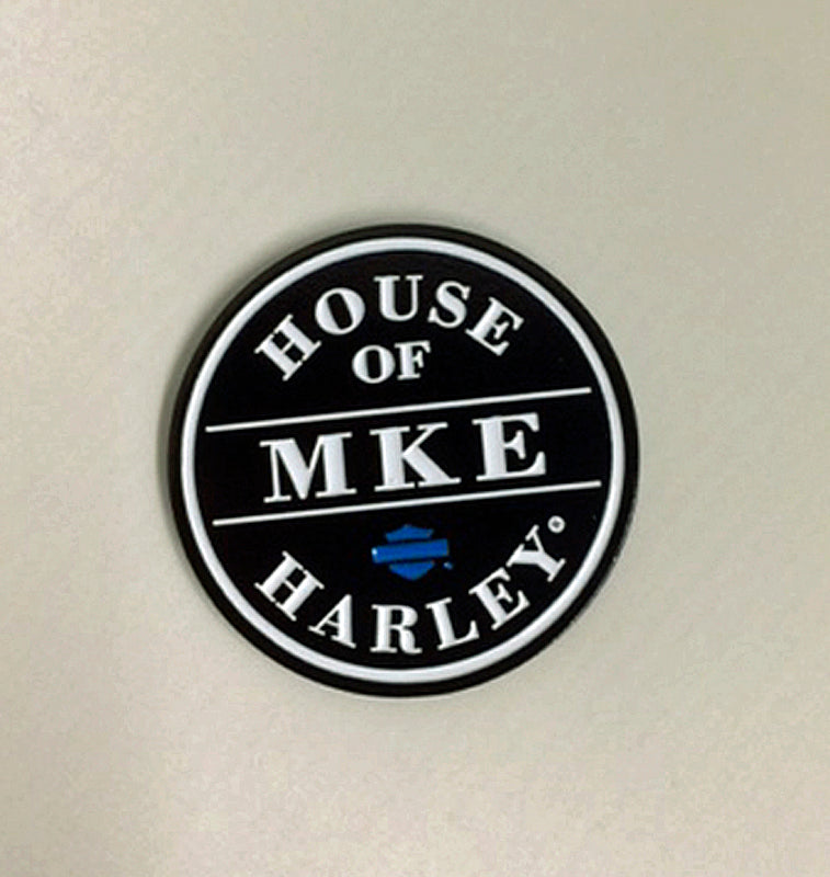 Collectors have long recognized coins as a valid and valued keepsake. Add the customized details celebrating the House of Harley-Davidson® and a salute to the men, women and canine officers who wear the Police Badge, and this high-quality Challenge Coin becomes its own precious metal. One side of this coin displays the House of Harley® MKE with a blue Bar & Shield® silhouette, while the other side features a Police Badge amplified with the eagle perched atop the Bar & Shield®, along with Old Glory draped in the background including a visual reference to the Thin Blue Line. The rich blue color and precision engraving make this the coin that merges your H-D® brand loyalty with your respect for True Blue First Responding Police Officers. No heads or tails, here. Both sides merit your call. Measures approximately 1.75" in diameter. Black/White/Blue. Metal. SymbolArts®