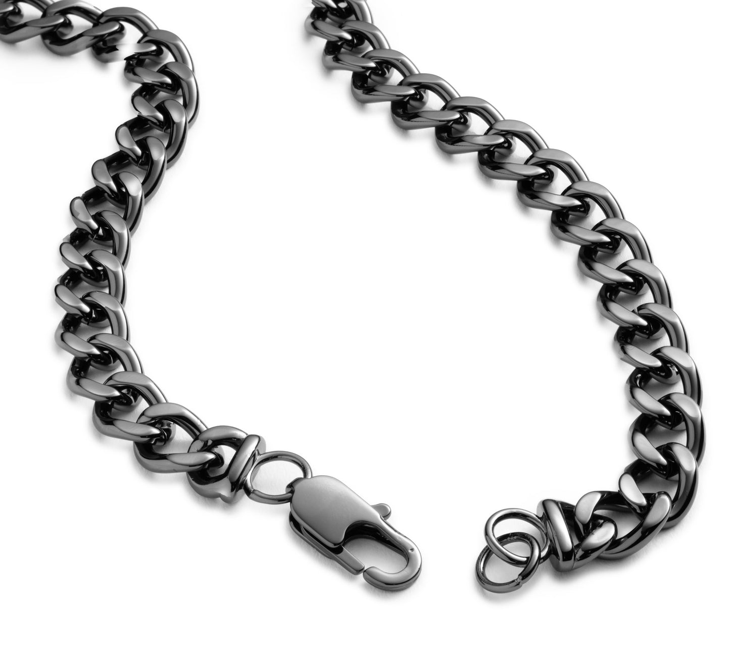 Men's 26" Black Bar & Shield Logo Studded Back Pendant Necklace