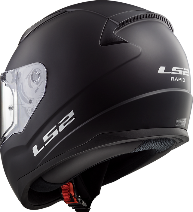 The helmet fastens using LS2’s popular DOT approved quick release buckle system.