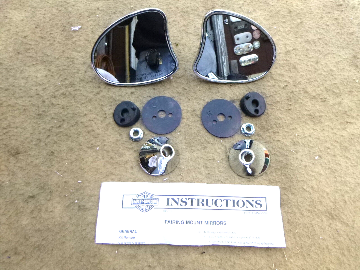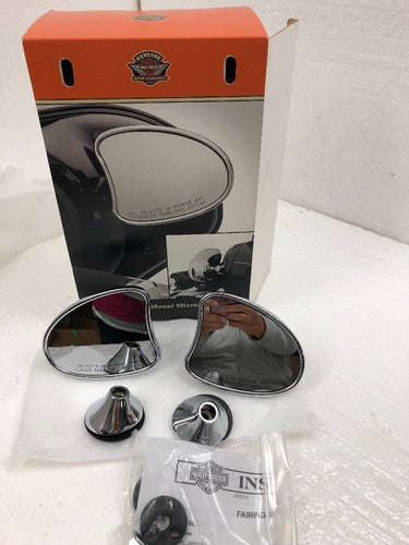 Harley-Davidson® Chrome Tapered Fairing Mount Mirrors, 56000098A. Fits '14-later Electra Glide®, Street Glide®, Ultra Limited™ and Tri Glide™ models. Mirrors are designed as a direct replacement for the Street Glide® model's Original Equipment mirrors. Single-stalk mount permits a wide range of adjustability. Convex mirror face maximizes the field of view. Can be installed on other Batwing fairing-equipped models in place of handlebar-mounted mirrors. Available in your choice of polished chrome or gloss black Edge Cut finish to match your styling direction. Both left and right side of bike. Includes: Right and left mirrors and all necessary mounting hardware. 1 year limited warranty. 56000098A