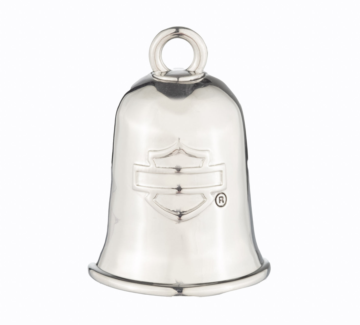 Protect your loved one on the road with the Harley-Davidson® Braided Bar & Shield Ride Bell. Made of brass with matte black plating, its classic bell shape bears a silver Bar & Shield and a braided edge.
