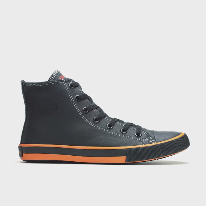 A classic high-top men's sneaker made with leather featuring the iconic bar and shield graphic on the side for H-D® edge every day. Check out the men's Roarke for a low-top option.