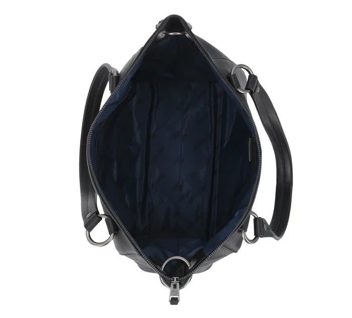 - Herrajes con acabado en metal mate y logotipo de Harley-Davidson ®
