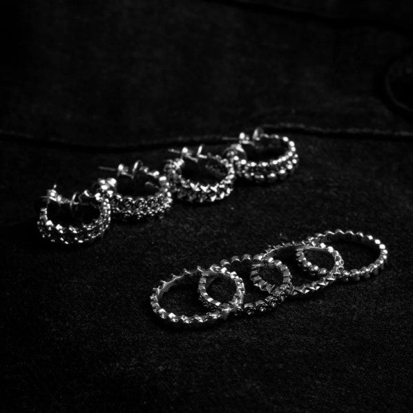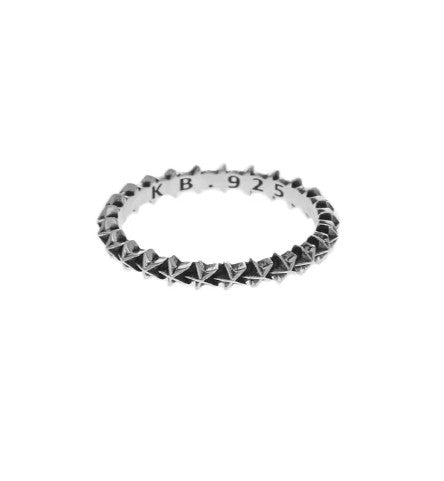 Elaborado con esmero en fina plata de ley 925, este elegante anillo presenta un diseño apilable único con diminutas estrellas 3D que rodean la banda. Ya sea que se use solo para un sutil toque celestial o combinado con otros anillos King Baby®, es el complemento perfecto para cualquier colección. Añade esta pieza atemporal a tu joyero y combínala con otros anillos apilables King Baby® para un look personalizado.