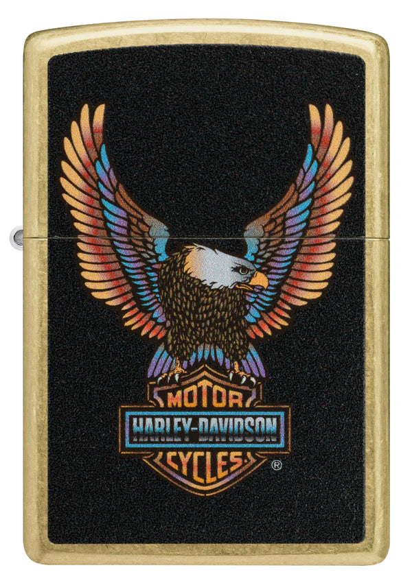 El icónico logotipo del águila de Harley-Davidson adorna este clásico encendedor Street Brass con un audaz diseño Color Image.