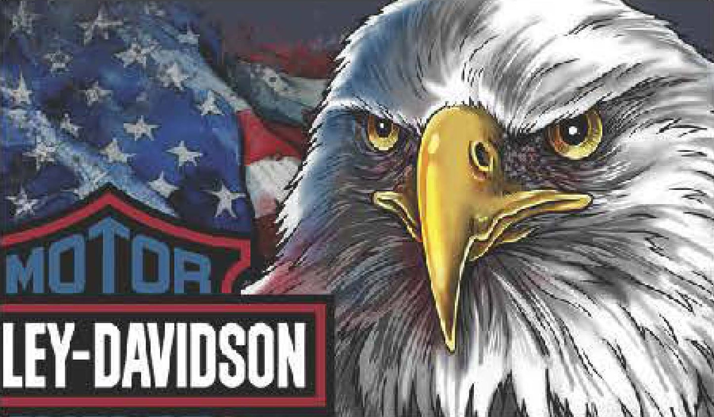 - Gráficos : Gráficos impresos desgastados de un águila calva, una bandera estadounidense y Bar & Shield en el frente; logotipo de House of Harley-Davidson, Milwaukee, EE. UU. con estampado de ala en la parte posterior.