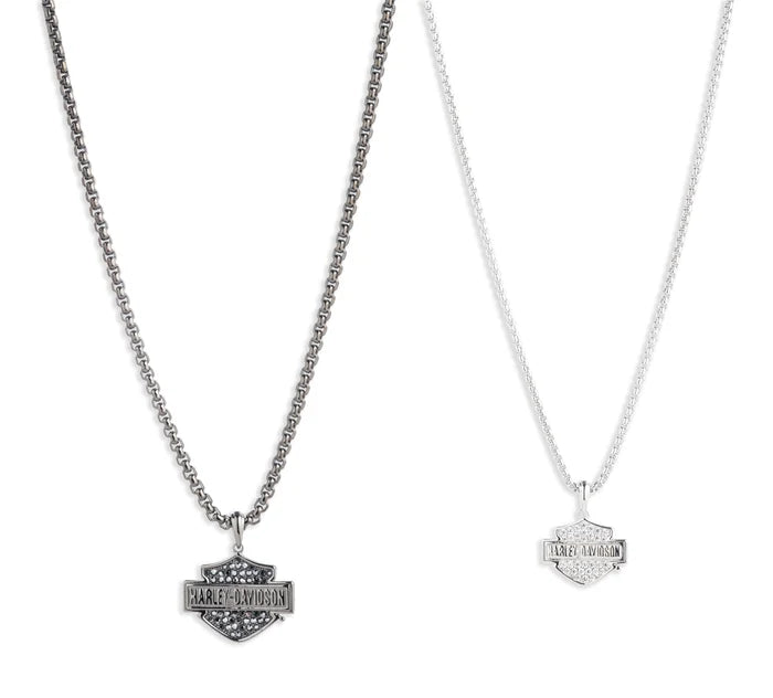 Keep your loved one close to your heart with the Harley-Davidson® Give One, Keep One Bar & Shield® Necklace Set. Made with real sterling silver, this set includes two necklaces- one for you and one to give to someone special. The 3 inch extender on each necklace ensures a perfect fit for all. Show off your love for Harley-Davidson® and share it with those who mean the most.