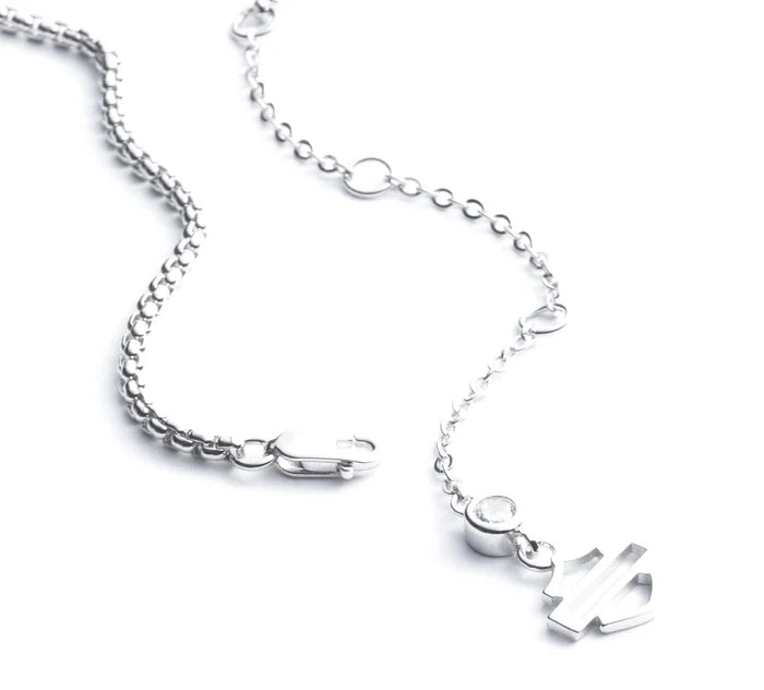 - Both secured with a lobster clasp and accented with an open Bar & Shield charm
