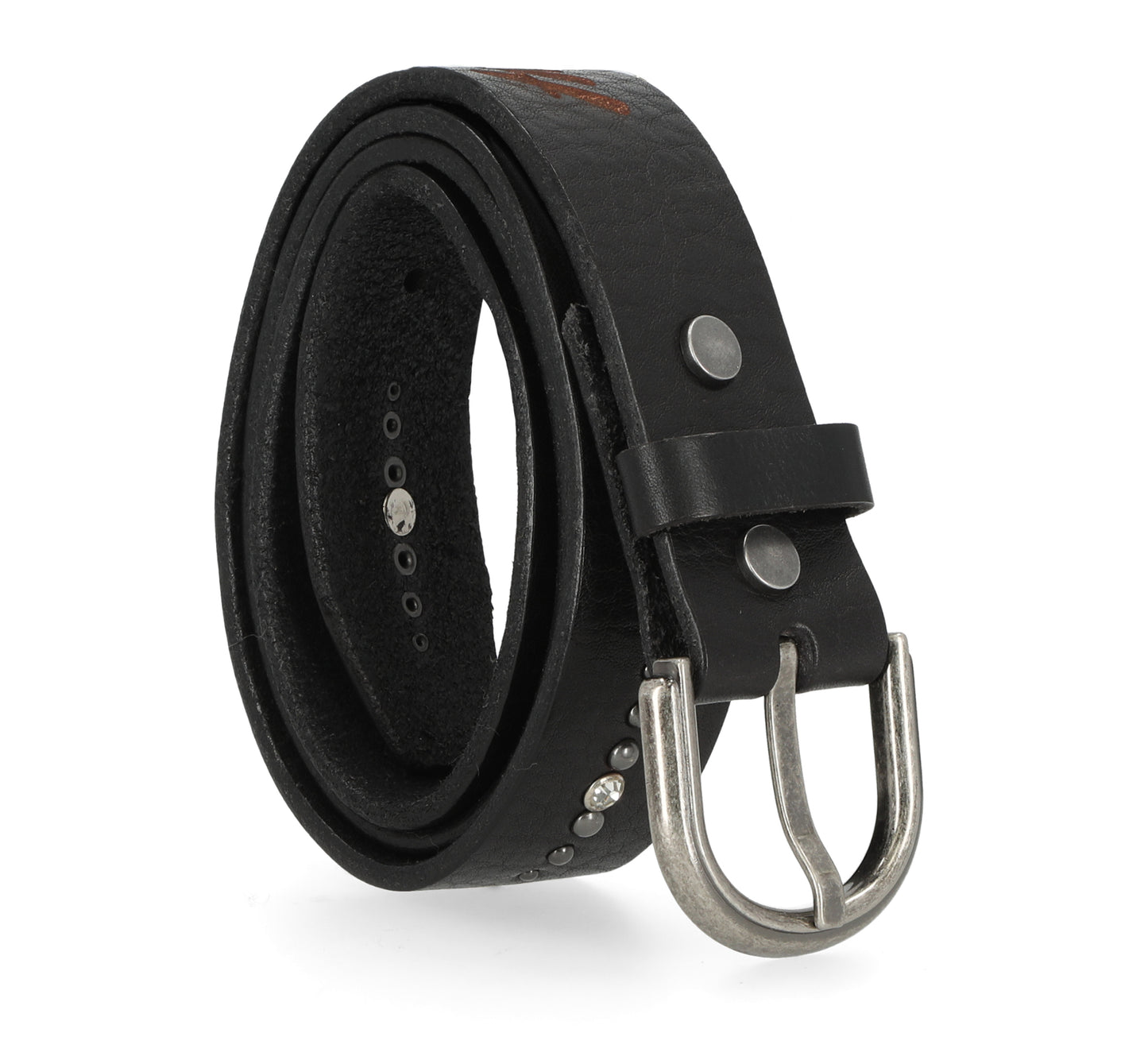 - Durable, smooth-surface genuine leather with antique nickel finish buckle