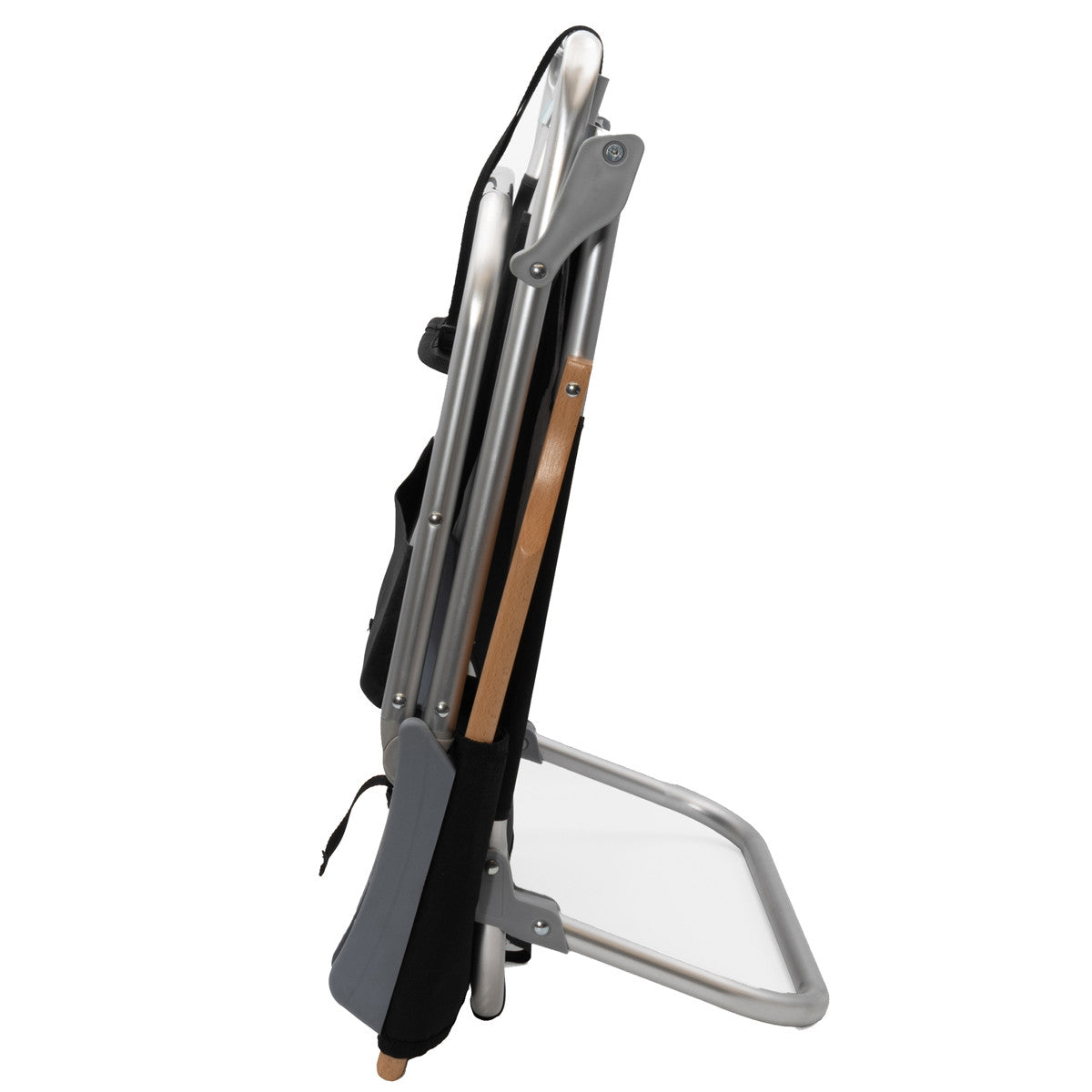 - Adjustable powder-coated steel tube frame with wooden handles and cup holders