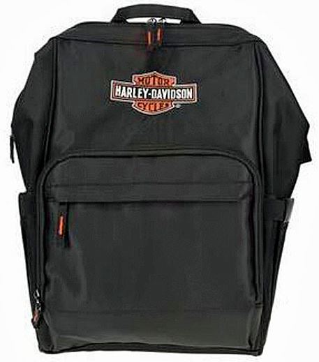 Portable, practical and loaded with parental support, the H-D® Diaper Backpack delivers organization and convenience for all your outings with baby. Made from a polyester/nylon blend, this sleek backpack includes a woven top grab handle for easy lifting, as well as padded, adjustable shoulder straps for the traditional backpack-carrying fit. The extra-wide top-zip opening gives you access to the generous main compartment that includes 4 open pockets and 2 horizontal-zip pockets (just right for separating dirty items), and stores the tri-fold foam changing pad. The front zip-around pocket provides insulated storage with 3 bottle-sized open pockets and 1 large mesh pocket; while the front horizontal-zip pocket provides quick access to baby's priority accessories -- for example, a fresh pacifier. All zippers feature easy-grab woven zipper pulls. The two expandable side pockets (one on either side) let you bring a bottle of water for Mom & Dad, too! And, with the precision embroidery of the Long Bar & Shield® logo on the front, your lifestyle resonates with the promise of a future rider. Black. Polyester/Nylon. SGI Apparel