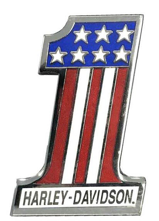 Keep the winning tradition of the Harley® flat track racing legacy in mind when you wear the H-D® #1 RWB Pin. The patriotic Stars & Bars merge with the championship Harley-Davidson® legacy to deliver a handsome icon with enduring pride. The high quality shiny silver-tone construction also displays the defining blue/white field of stars and the red/white stripes with enamel fill for a look of distinction. Right at home on your riding jacket, and just as righteous on a business suit lapel. Secures with two flat-head pin backs. Measures approximately 1"W x 1.50"H. Silver-Tone finish + Red/White/Blue. SymbolArts®