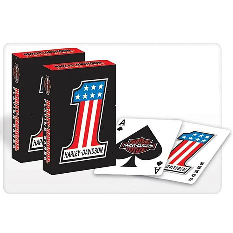 You are a pretty good card-player. You know your game. You execute your strategy. And, more often than not, you win. So bring the winning ways of the flat-track racing legacy to your hand with the H-D® #1 Stars & Bars Logo Playing Cards. These standard-size cards feature the #1 Logo along with the iconic Bar & Shield® graphic on selected cards, displaying your connection to the lifestyle you love. Dependable quality. Keep a deck in your saddlebags, in your office desk or garage workspace. Your deal. Dart World