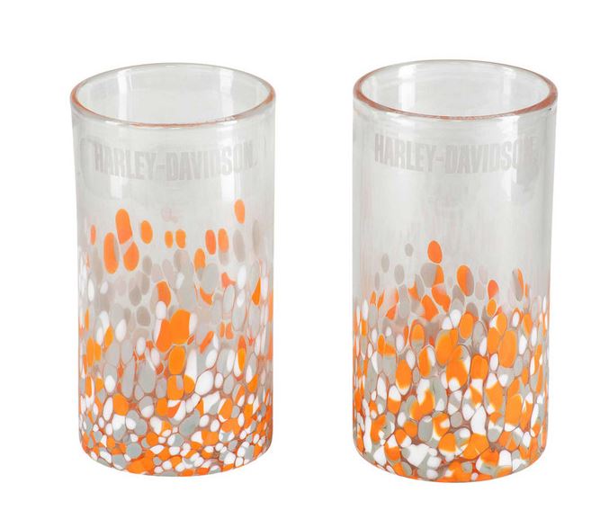 Harley-Davidson® Confetti Highball Set | Clear-Orange Confetti