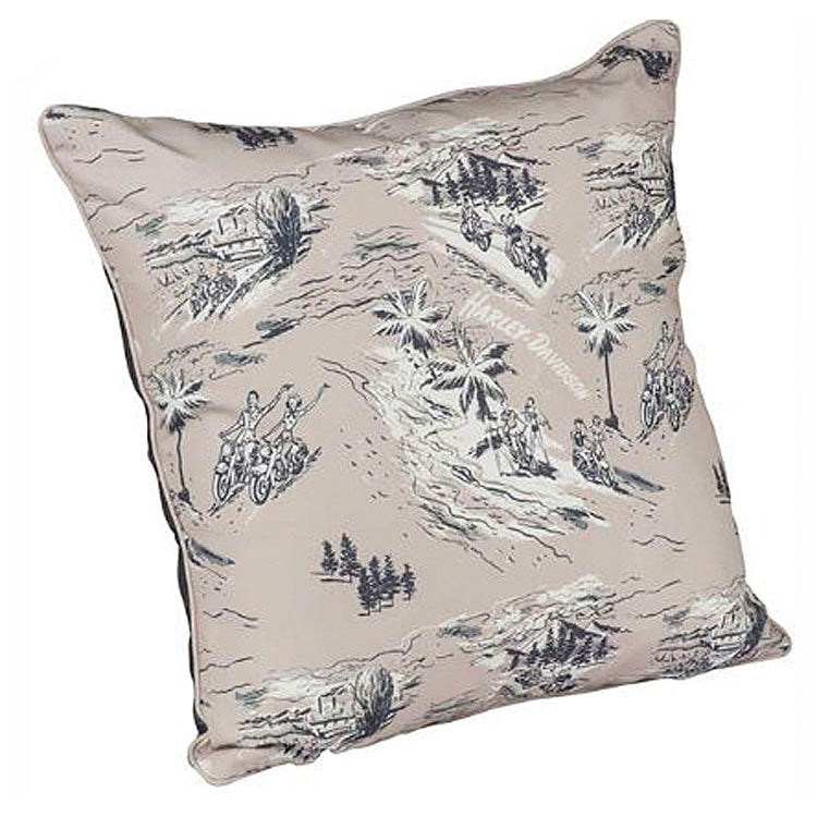 Add a soft touch to your Outdoor Bench, and amplify your creature comforts when using your Camping Sleeping Bag. The water-resistant, fade-resistant H-D Celebration Outdoor Pillow takes the edge off, and holds up to the great outdoors. Made from cozy and resilient polyester, this pillow features the contrasting, bold Harley-Davidson® signature and reverses to display vacation-land jubilation, from the palm-tree beaches to the pine-tree forest. Measures approximately 16" square. Black/Multi-Color. Polyester. Ace Products Management Group