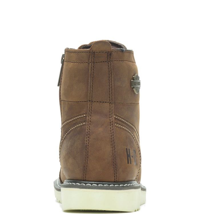 - Brand elements display the embossed Harley-Davidson® signature at the top of the tongue, the debossed H-D® abbreviated script on the outside heel and the metal Bar & Shield® on the outside ankle for a collective message conveying your pursuit of freedom on the open road