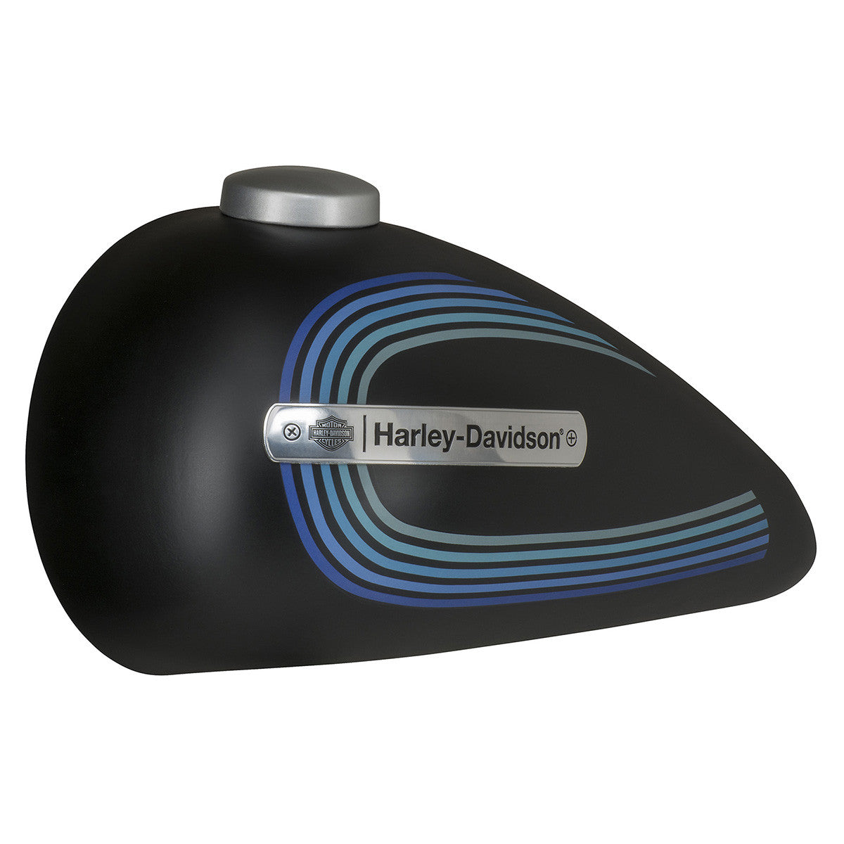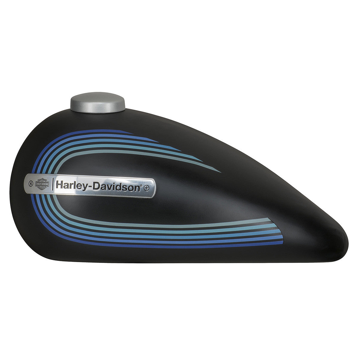 This Harley-Davidson® 2018 Gas Tank Metal Wall Art features a scale model of a gas tank with a 2018 tank graphic and emblem. Perfect for any Harley-Davidson® enthusiast, this wall art adds a touch of vintage style to any room. Measuring 20" L x 9.75" H x 7" D, it is a great size for display.