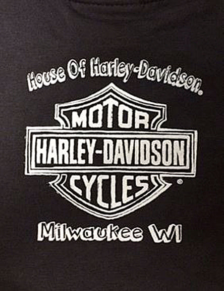 - Printed graphics on the front of this black long-sleeved Tee display an orange Open Bar & Shield® logo, while our custom graphics on the back include the House of Harley-Davidson® script headlining the iconic Bar & Shield® logo and completed with the Milwaukee, WI locator