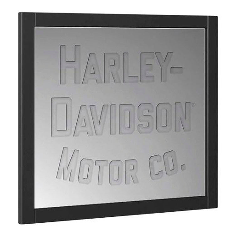 One quick check before you head out the door. Add the H-D® Motor Company Mirror to your entryway or mudroom and confirm your pulled-together look before you start your day. The etched-look HDMC™ signature provides a virtual welcome to your fellow riders and the black lacquer-finish wood frame adds definition. Measures approximately 24" square. Ace Products Management Group