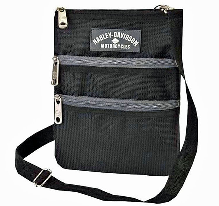 Basic black just got better. Contrasting grey zippers and the grey rubber patch elevate the classic H-D® look of the X-Body Black Crossbody Bag. Made from water-resistant polyester, the sling bag features an adjustable strap that lets you fit the crossbody silhouette to your comfort, or remove altogether to wear it as a hip bag. This pint-size portable gives you plenty of room for the must-haves you need for active lifestyle, with a top-zip opening and two front horizontal-zip pockets. Strap drop at shortest measures 14", when fully extended it measures 47". Measures approximately 7.75"W x 9.5"H x 0.25"D. Black. Polyester. Athalon®