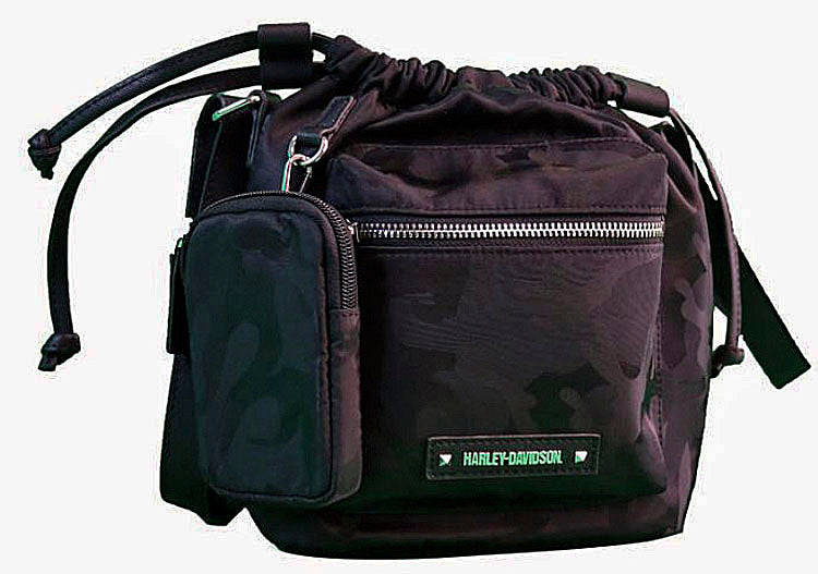 Harley-Davidson® Women's Silky Camo Draw-String Crossbody Handbag | Detachable Pouch | Adjustable Shoulder Strap
