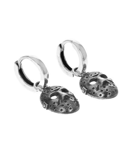 - Design features a small hoop closure with a slasher movie hockey mask charm