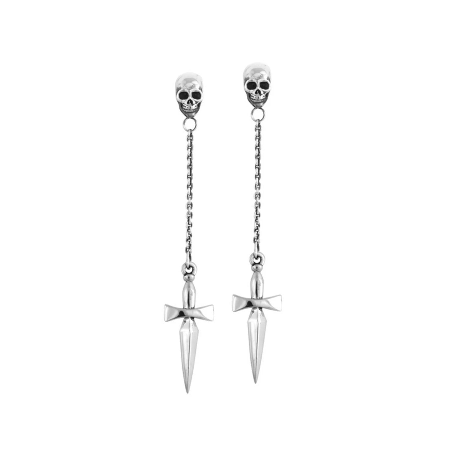 King Baby® Chain Earrings W/ Skull Posts & Dagger Drops