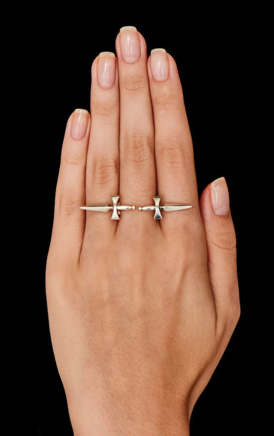- Design features a classic dagger with a post-back