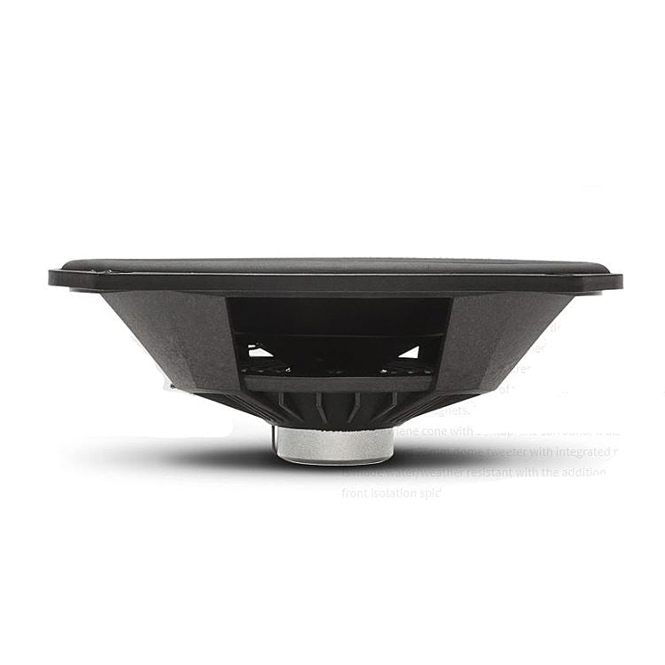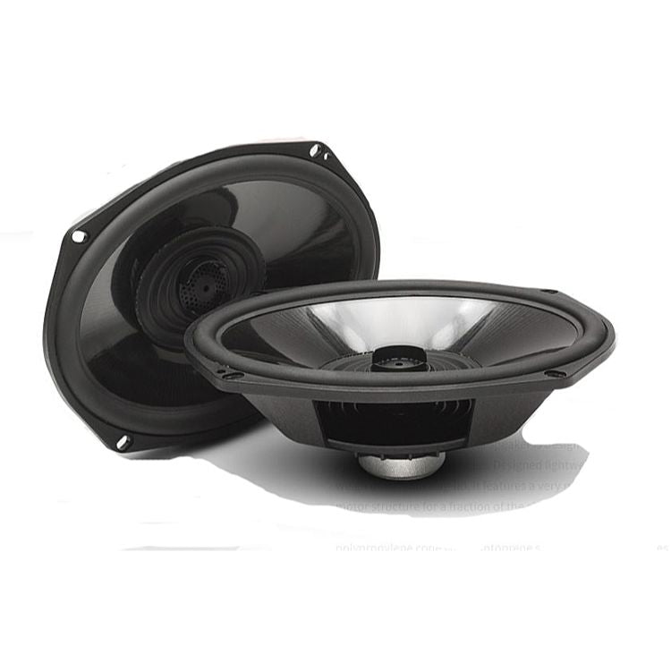 The Rockford Fosgate® TMS69 full-range coaxial speaker is designed for baglid applications on motorcycles. The light-weight design minimizes pressure on the baglid, and features a very powerful Neodymium motor structure for a fraction of the size & weight of traditional ceramic ferrite magnets. Driver uses a co-molded reinforced polypropylene cone with Santoprene surround, and these speakers also feature an ultra-efficient 25mm dome tweeter with integrated phase plug, and are made water/weather resistant with the addition of a Santoprene front isolation spider connecting between the tweeter housing and cone assembly. Midrange size (Nominal Diameter) measuring approximately 6" X 9". Glass-reinforced polymer frame. Purpose Built Audio. Rockford Fosgate®