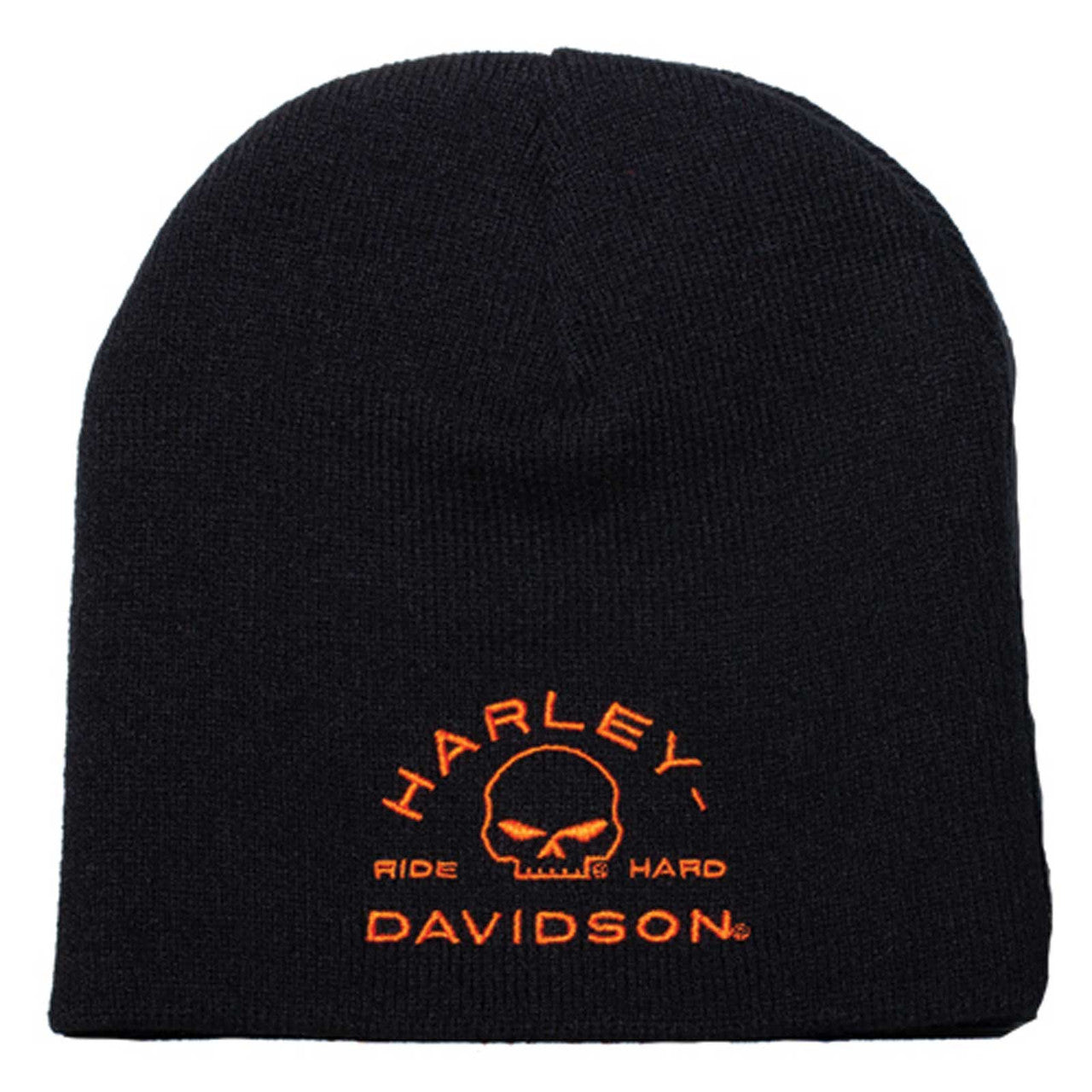 Upgrade your accessories with the winning look of the Harley-Davidson® Zone Willie G™ Skull Beanie. Made from pure acrylic, this knit cap provides a light-weight fit that delivers cozy warmth and impressive softness. You know -- a cap you can comfortably wear all day, inside or outdoors. The rib-knit construction features the legendary Harley-Davidson brand id, along with our favorite, the Willie G™ Skull logo. Remember, if you ain't the lead dog, the scenery never changes so "Ride Hard." Get out in front with this easy-wear, easy care beanie.